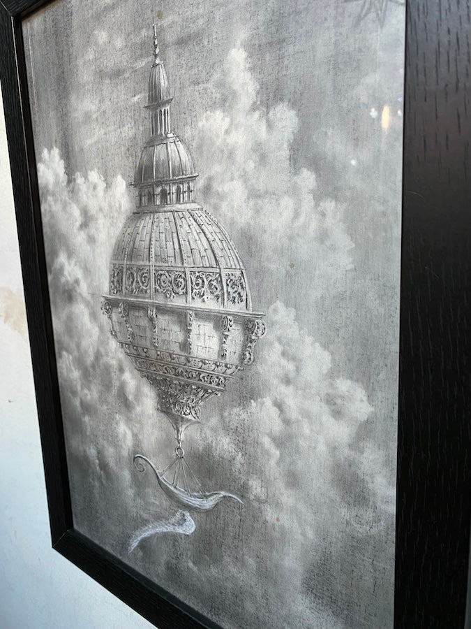 Framed graphite drawing on 16.5 x 11.5 Moleskine paper